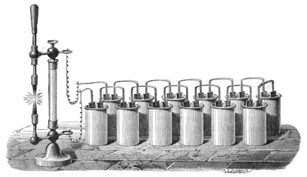 出典:Augustin Privat Deschanelによる”Arc light and battery”ライセンスはPD(WIKIMEDIA COMMONSより)
