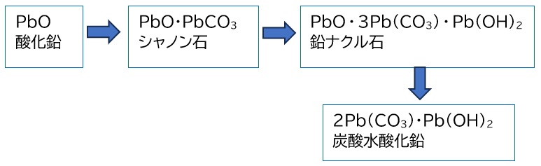 これらの分析結果と化学的な洞察により、本論文では絵の下地や絵の具の中で、酸化鉛が油と反応して、シャノン石になり、さらに鉛ナクル石、最終的には炭酸水酸化鉛になると推定しています(図2)。残念ながらレオナルド自身の記述には見つけられていませんが、酸化鉛が油を乾燥・硬化させることをレオナルドが見つけて、顔料としてよりもそのための薬剤として酸化鉛を利用していたのではないかと論文の著者らは推察しているのです。
