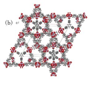 (b) Yaghi博士らが報告したMOFの構造の一例(文献5のデータから作成)。
