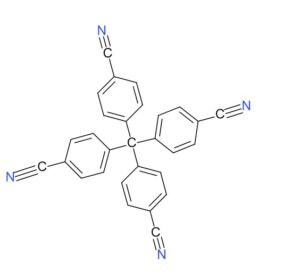 最初に突破口を開いたのが、今回の受賞者の一人R. Robson博士でした。彼は炭素原子に同一の部品を4つ結合させた分子(図3)を作りました。その分子は金属イオンに結合しやすい窒素原子を持つものでした。この分子と銅イオンを反応させることで、ダイヤモンドを拡張したような構造を持つMOF(下記の動画参照 )を初めて合成することに成功しました2。MOFの空孔の中には陰イオンと溶媒分子が入っています。